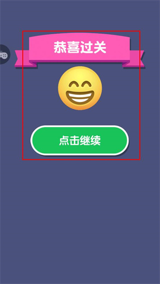 4、通關后等待界面顯示恭喜過關彈窗,點擊綠色的點擊繼續(xù)按鈕,進入下一關。