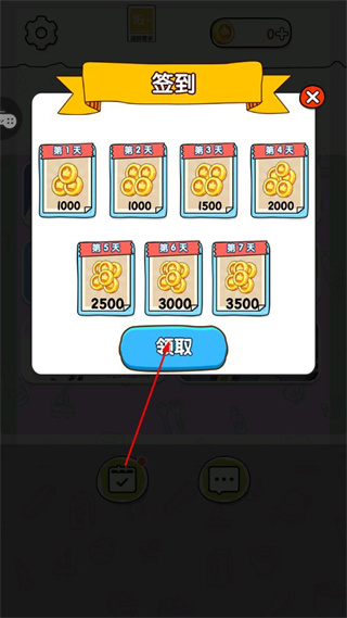 2、在簽到頁面中,點擊藍色的領取按鈕,獲取對應天數(shù)的金幣獎勵。