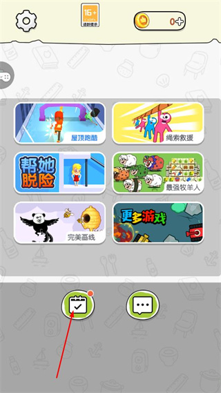 1、打開繩索救援軟件,找到界面下方帶對勾的日歷圖標并點擊,進入簽到頁面。