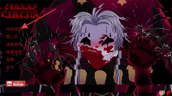 1、在怪胎馬戲團(tuán)初始頁面界面里,點(diǎn)擊開始游戲選項(xiàng),即可開啟該游戲的游玩流程。