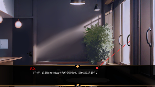 2、處于咖啡店場(chǎng)景時(shí),找到紅色箭頭所指的吧臺(tái)餐品區(qū)域,完成對(duì)應(yīng)餐品的準(zhǔn)備操作以推進(jìn)流程。