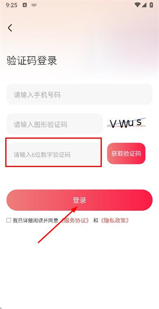 3、在驗(yàn)證碼輸入框中填寫收到的驗(yàn)證碼,點(diǎn)擊登錄完成賬號(hào)的登錄操作。