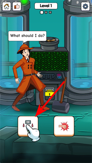 2、在Level1場(chǎng)景中,點(diǎn)擊下方帶箭頭標(biāo)識(shí)的操作按鈕,這是觸發(fā)道具互動(dòng)的核心操作,可配合場(chǎng)景工具推進(jìn)解謎進(jìn)程。