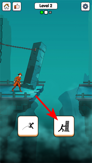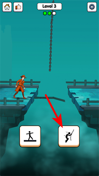 4、在Level3場(chǎng)景中,點(diǎn)擊爬鏈子的操作按鈕,這是解決橋梁連接問(wèn)題的核心操作,完成后可打通角色的通行路線。