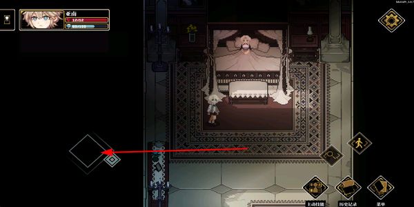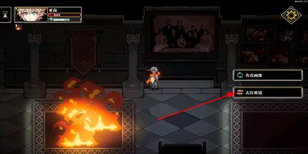 4、與場景中的選項交互,選擇去往密道的指令,進入新的探索區(qū)域,繼續(xù)推進游戲的劇情與探索流程。