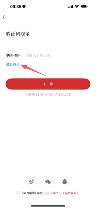 3、在登錄頁面,點擊密碼登錄選項,切換至密碼登錄界面。