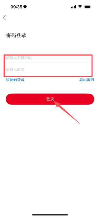 4、在密碼登錄界面,填寫手機號和密碼,點擊登錄,完成賬號登錄。