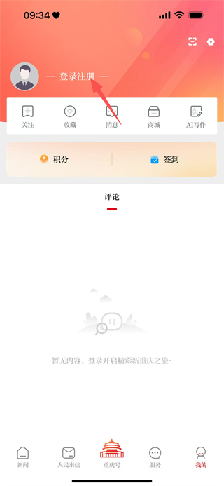 1、在新重慶首頁,點擊底部的我的選項,進入個人頁面。