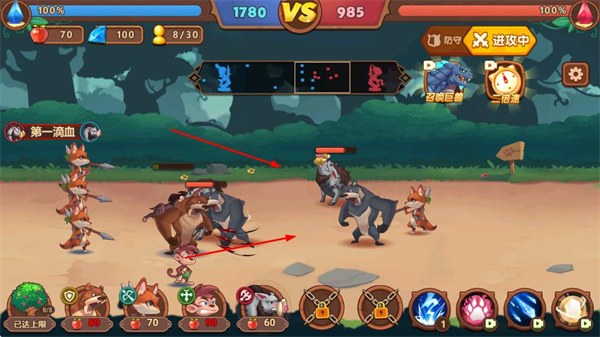 2、召喚己方單位部署至戰(zhàn)場(chǎng),利用單位的攻擊能力對(duì)抗敵方部隊(duì),同時(shí)可借助增益道具強(qiáng)化攻勢(shì)。