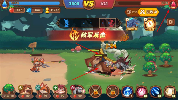 需根據(jù)敵人進(jìn)攻路線與特性,在關(guān)鍵位置部署動(dòng)物戰(zhàn)士,合理搭配近戰(zhàn)、遠(yuǎn)程、輔助類型,利用地形優(yōu)勢(shì)構(gòu)建堅(jiān)不可摧的防線,考驗(yàn)戰(zhàn)術(shù)規(guī)劃與臨場(chǎng)調(diào)整能力。