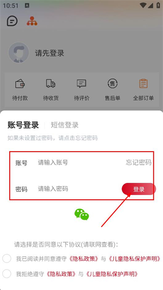 4、在賬號(hào)登錄欄,填寫賬號(hào)和密碼,點(diǎn)擊登錄,完成賬號(hào)登錄。
