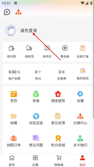 3、在個(gè)人頁(yè)面中,點(diǎn)擊請(qǐng)先登錄區(qū)域,進(jìn)入登錄選擇頁(yè)面。