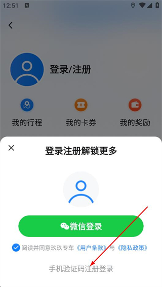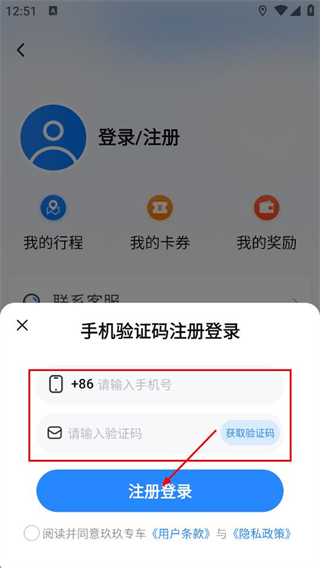4、在登錄頁面,填寫手機(jī)號,并填入收到的驗(yàn)證碼,點(diǎn)擊注冊登錄,完成賬號注冊與登錄。