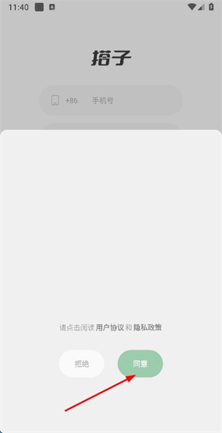 1、在使用協(xié)議隱私政策彈窗中點擊同意按鈕,進入登錄頁面。