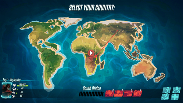 3、在世界地圖界面中,選定SouthAfrica區(qū)域后,點擊右上角的播放按鈕,即可加速在該國家對應(yīng)的游戲環(huán)節(jié)。