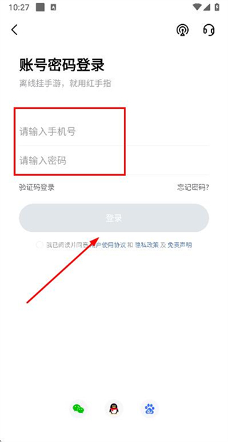 3、在登錄頁面填寫手機(jī)號和密碼,勾選協(xié)議后,點(diǎn)擊登錄完成賬號登錄操作。