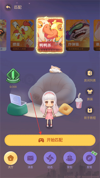 1、在匹配界面,選擇鴨鴨殺模式,點擊開始匹配按鈕,進(jìn)入游戲房間。