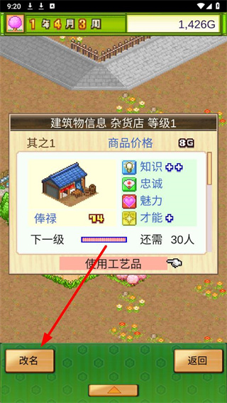 2、在建筑物信息界面中,點擊底部的改名按鈕,彈出建筑物名稱輸入框。