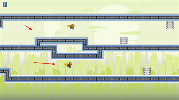 采用簡(jiǎn)潔細(xì)膩的卡通畫風(fēng),場(chǎng)景清爽無多余干擾,重力切換時(shí)的畫面過渡流暢,搭配帶感的背景音樂,營(yíng)造出沉浸式的跑酷氛圍。