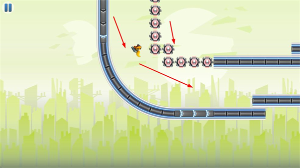 3、在復(fù)雜軌道路段,跟隨軌道走向移動(dòng),適應(yīng)路徑變化,向關(guān)卡后續(xù)區(qū)域前進(jìn)。