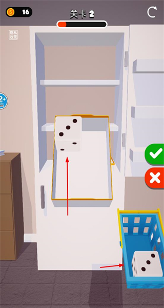 1、進(jìn)入關(guān)卡后,將籃筐內(nèi)物品放入冰箱對應(yīng)區(qū)域,完成物品歸位。