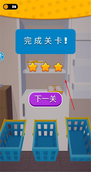 3、完成關(guān)卡物品整理后,獲得三星評價,點擊下一關(guān)開啟新的整理挑戰(zhàn)。