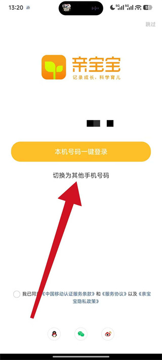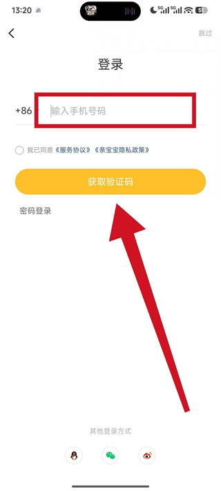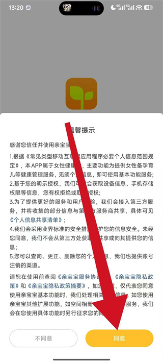 1、打開(kāi)親寶寶,彈出彈窗后,點(diǎn)擊同意,進(jìn)入登錄選擇頁(yè)面。