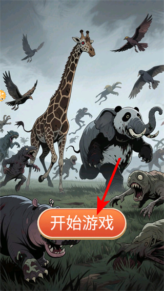 1、進(jìn)入游戲啟動(dòng)界面后,點(diǎn)擊紅色箭頭指向的開(kāi)始游戲按鈕,進(jìn)入游戲的僵尸動(dòng)物對(duì)戰(zhàn)關(guān)卡,這是開(kāi)啟游戲的關(guān)鍵操作。