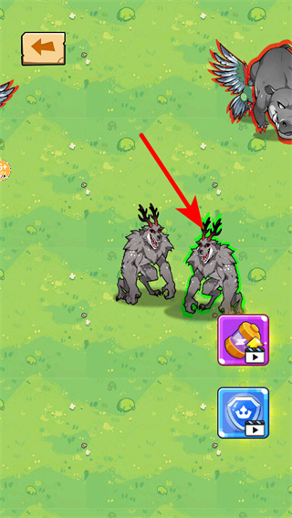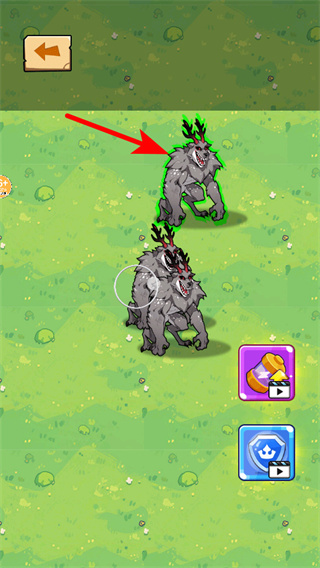 3、繼續(xù)跟隨紅色箭頭指引,點(diǎn)擊指定的僵尸狼角色,完成角色的合并進(jìn)階,進(jìn)一步強(qiáng)化戰(zhàn)斗單位的能力,推進(jìn)關(guān)卡的對(duì)戰(zhàn)進(jìn)度。