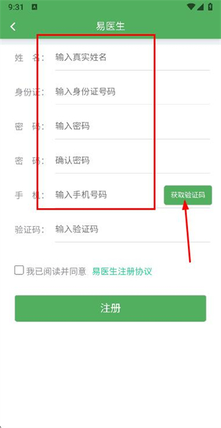 2、在注冊頁面填寫信息后,點(diǎn)擊獲取驗(yàn)證碼按鈕。