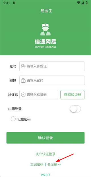 1、在易醫(yī)生登錄頁面點(diǎn)擊去注冊選項(xiàng),進(jìn)入注冊頁面。