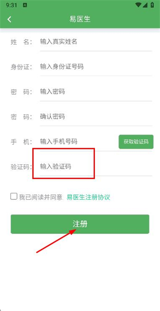 3、在注冊頁面輸入驗(yàn)證碼,勾選協(xié)議后點(diǎn)擊注冊按鈕完成賬號注冊。