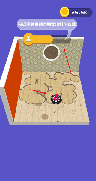 2、使用道具清理公寓內(nèi)雜物,完成初步整理,為裝修做準(zhǔn)備。