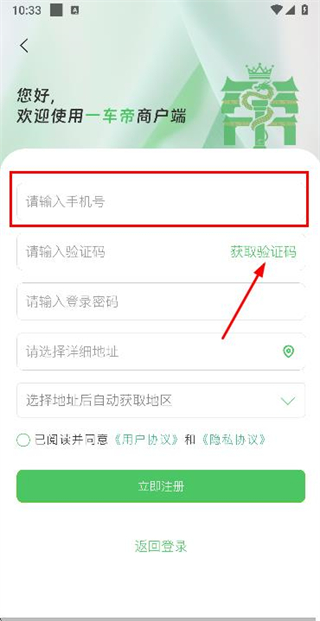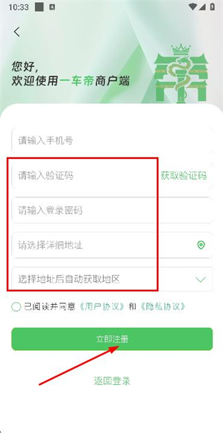 3、在注冊(cè)賬號(hào)頁面填寫驗(yàn)證碼、密碼和地址,勾選協(xié)議后點(diǎn)擊立即注冊(cè)完成注冊(cè)操作。