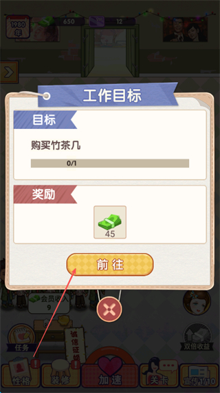 1、查看界面提示的購買竹茶幾任務,點擊對應指引區(qū)域進入任務界面。
