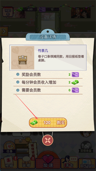 3、消耗120資源購買竹茶幾,完成設施解鎖。