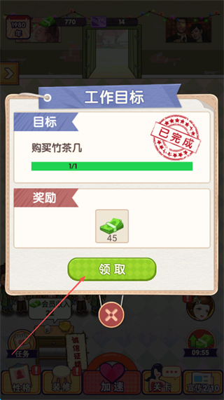 4、返回工作目標界面,點擊領取獲取任務獎勵,推進游戲進度。