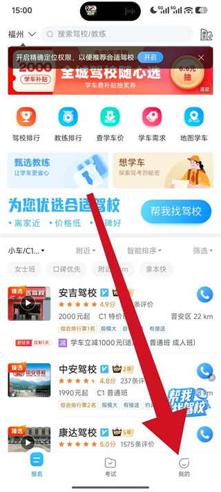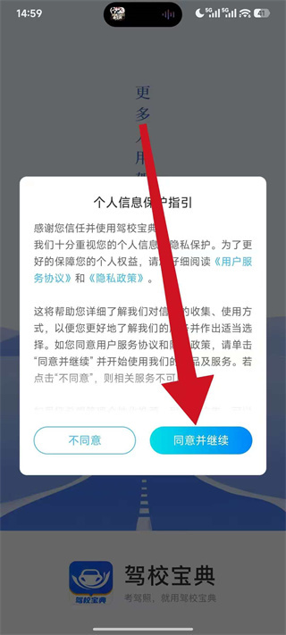 1、打開駕校寶典,在彈窗中點擊同意并繼續(xù),進入應(yīng)用首頁。
