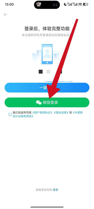 4、在登錄頁面中,選擇微信登錄,同時勾選相關(guān)協(xié)議,按照提示完成微信授權(quán)。