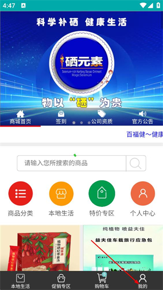 1、在商城首頁,點擊底部的我的選項,進入賬號登錄頁面。