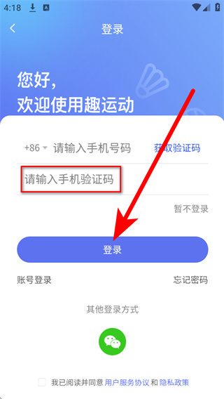 4、將收到的短信驗證碼填入手機(jī)驗證碼欄,勾選相關(guān)協(xié)議,點(diǎn)擊登錄,即可完成賬號登錄。