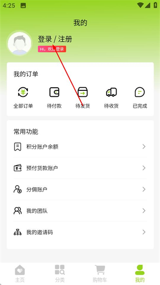2、在個人頁面點擊登錄注冊區(qū)域,進入登錄頁面。