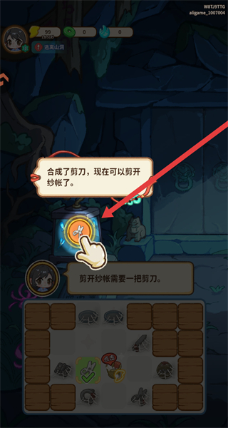4、點(diǎn)擊使用合成后的剪刀,對(duì)目標(biāo)對(duì)象進(jìn)行操作,解救蝴蝶。