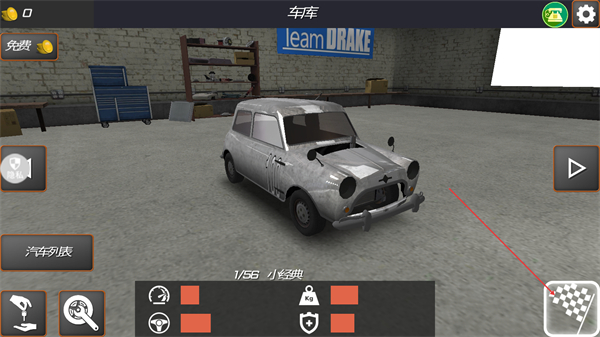 1、在車庫選擇車輛如小經(jīng)典,點擊開始按鈕進入賽場。
