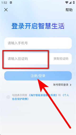 4、輸入驗(yàn)證碼,勾選相關(guān)服務(wù)條款后,點(diǎn)擊注冊(cè)登錄,完成注冊(cè)。