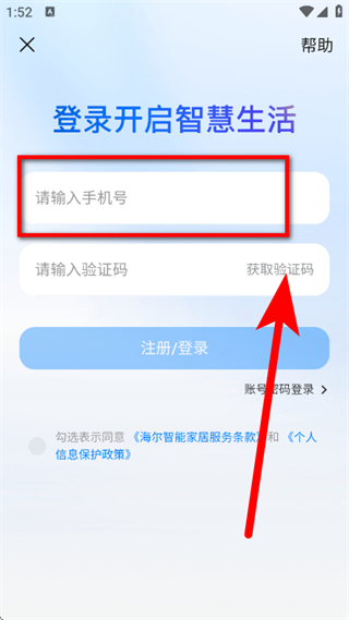 3、在登錄頁(yè)面,輸入手機(jī)號(hào),點(diǎn)擊獲取驗(yàn)證碼。