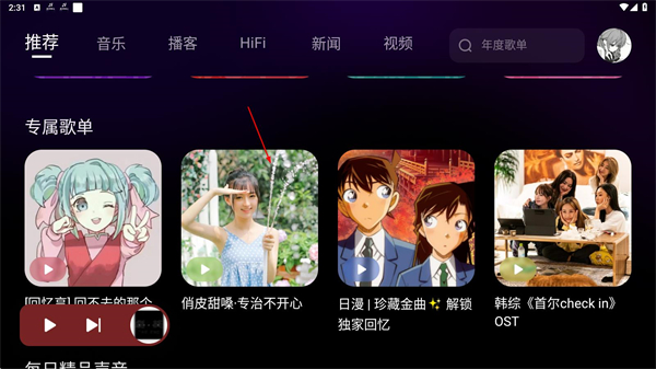 1、在騰訊愛趣聽首頁,找到專屬歌單板塊中的目標(biāo)歌單,點擊即可進(jìn)入該歌單頁面。