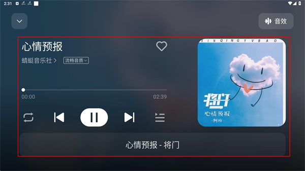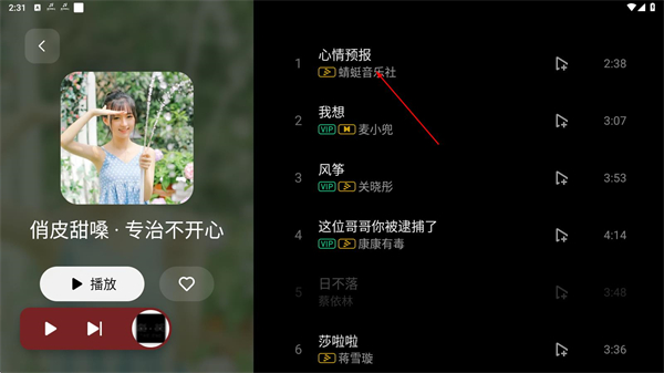 3、在歌曲列表頁點擊對應(yīng)歌曲,即可進(jìn)入該歌曲的播放頁面開始播放。