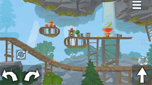 3、進(jìn)入關(guān)卡后,通過左側(cè)的左右方向按鈕控制角色移動(dòng),靠近場(chǎng)景中的蘋果等物品,完成收集類的關(guān)卡目標(biāo)。
