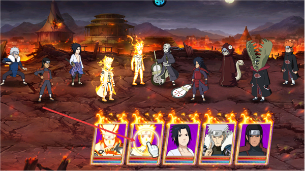 1、選擇下方忍者卡牌如鳴人,將其部署到戰(zhàn)場中,準(zhǔn)備參與戰(zhàn)斗。